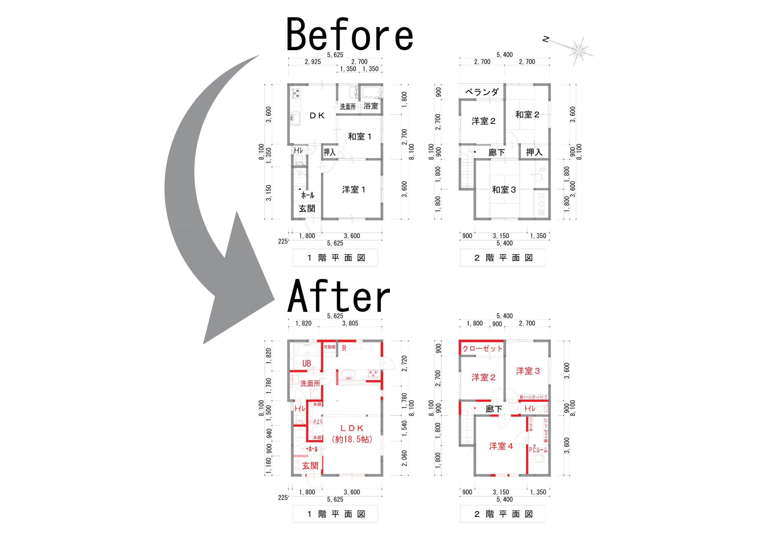 2. 戸建てリフォーム:大阪府豊中市 H様邸 大きく傾いてしまっていた家を垂直にし全体のリフォーム